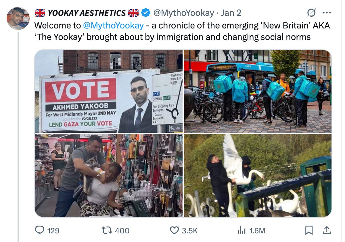 However, it is possible to see another account attempting to follow the very same trajectory. The neologism “YooKay” was coined by Kunley Drupka, through the Yookay Aesthetics X account and it dedicates itself to doing the kind of work that @WokeCapital used to do, but for what it calls the ‘New Britain’.