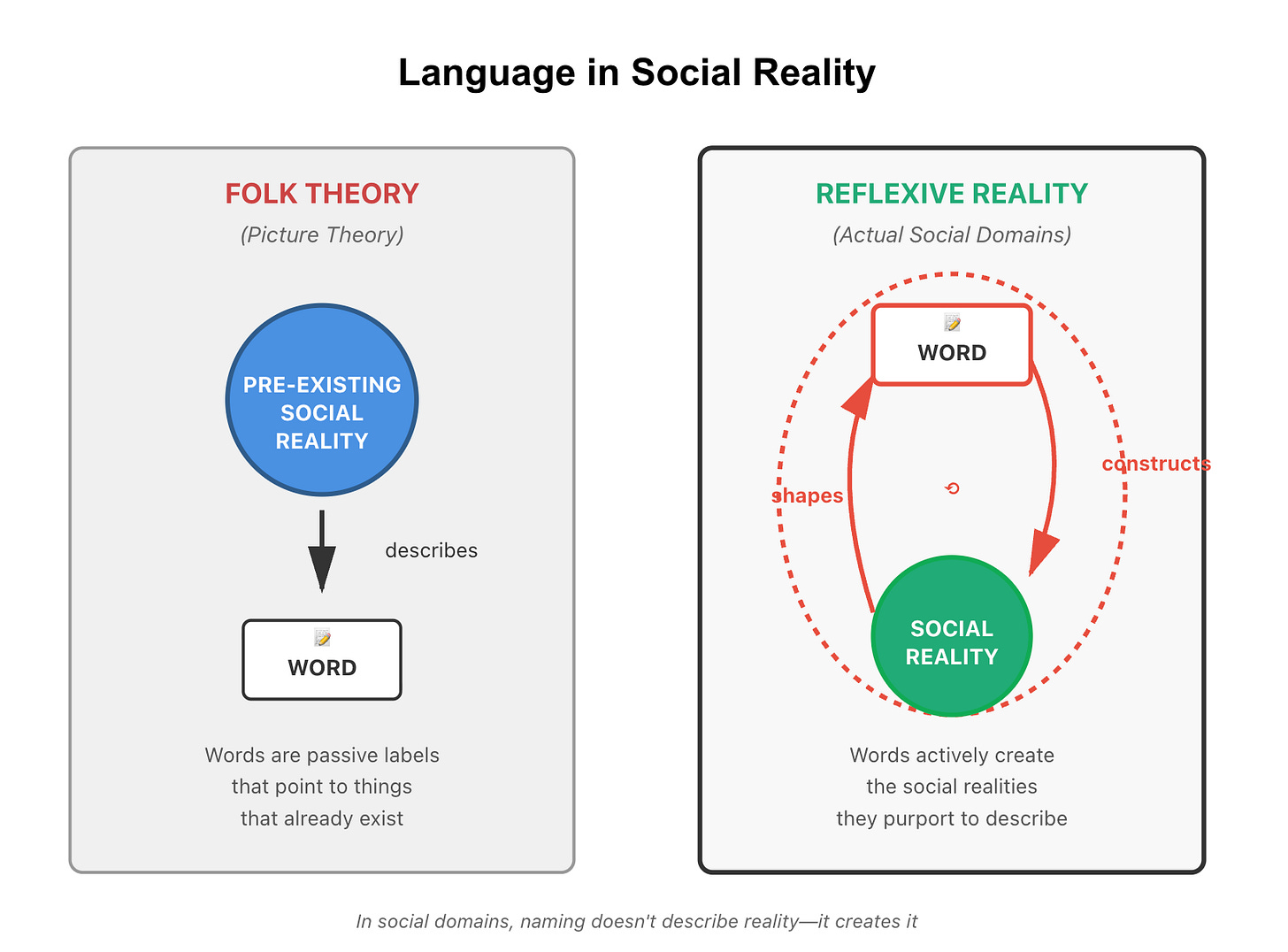 And the reason is simple: in social reality, language is reflexive: the map doesn’t just describe the territory—it shapes it.